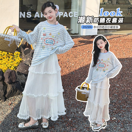 1*0收藏“2601女童冰丝条纹长袖网纱裙”