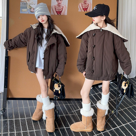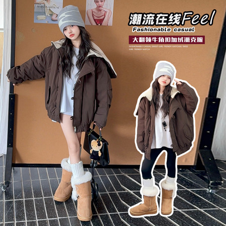 1*3收藏“8169女童大翻领牛角扣棉服外套”