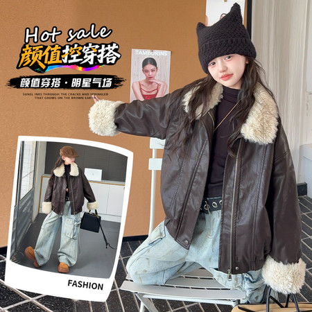 1*5收藏“8170女童兔绒毛领皮衣外套”